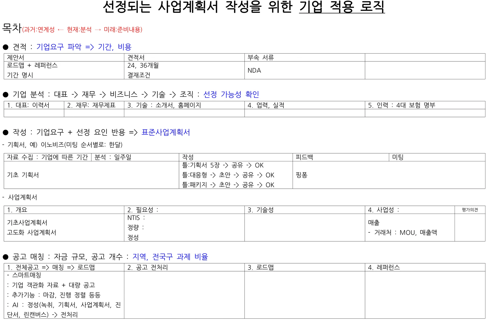 3) 기초기획서 스프린트: 5일 분석 → 1개월 기획 → 3개월 작성